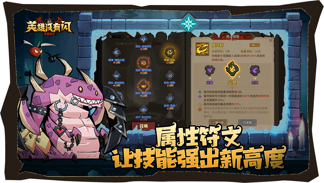推图模式:依赖「雷旋风」高频AOE清怪,雷电链触发群体易伤。